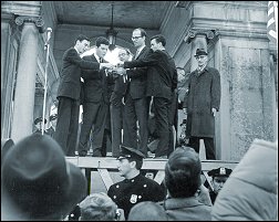 for 32 hours, making speeches from atop the car, and ultimately