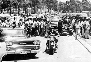 “This was the most violently attacked sit-in during the 1960s and is the most publicized. A huge mob gathered, with open police support while the three of us sat there for three hours. I was attacked with fists, brass knuckles and the broken portions of glass sugar containers, and was burned with cigarettes. I'm covered with blood and we were all covered by salt, sugar, mustard, and various other things.” |